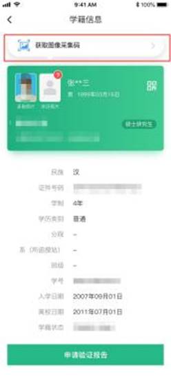 2.选择学籍,查看对应采集码。