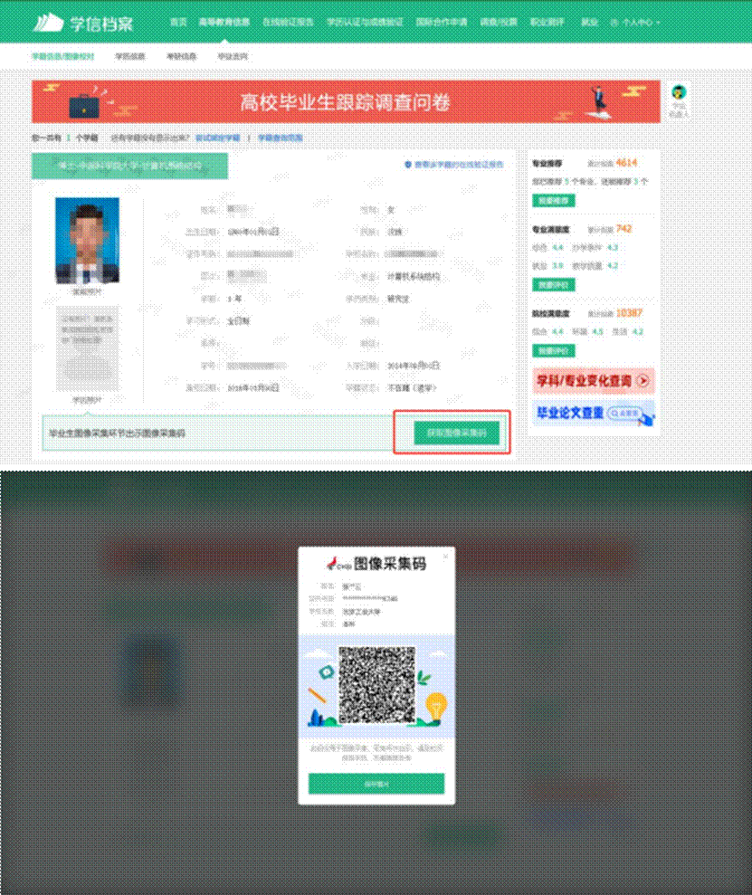 图像采集目的:学信网毕业生学历、学籍注册电子照片、毕业证书纸质照片。